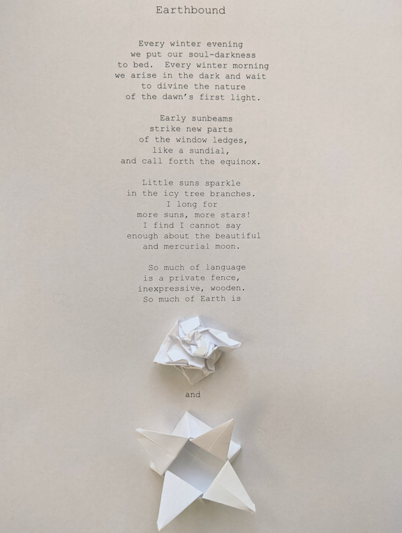 The challenge I set for myself here was to incorporate a necessary wordlessness into that which is made of words. This is the paper version, impossible to publish.